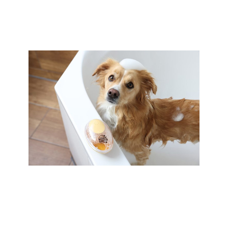 Brosse de bain chien MagicBrush, l'objet essentiel pour un lavage en douceur et surtout en profondeur.