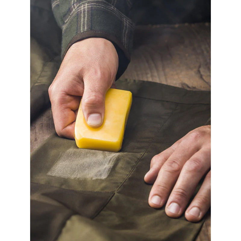 Un bloc de cire de 90g suffit pour entretenir environ 8 vêtements.