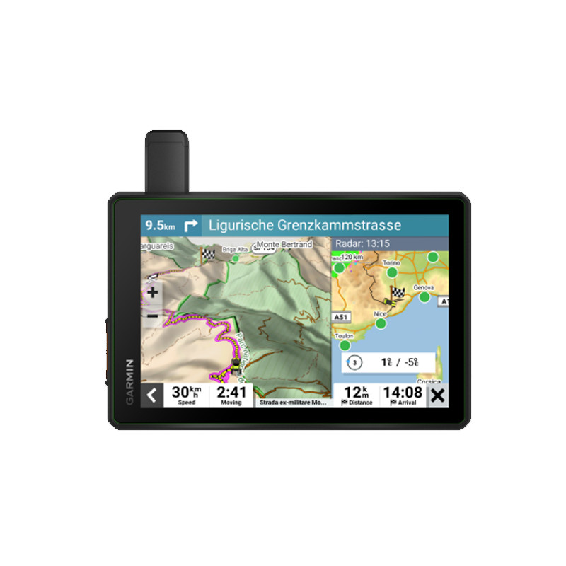> Écran haute visibilité : Doté d’un écran tactile ultra-lumineux de 8″, utilisable avec des gants, ce GPS reste lisible aussi bien en plein soleil que dans l’obscurité totale. Il s’adapte à vos préférences en mode portrait ou paysage.