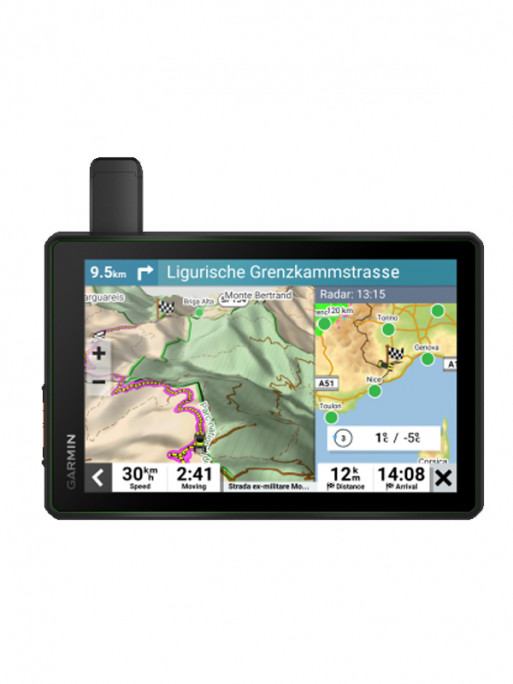 > Suivi de groupe pour vos excursions : Le Group Ride Tracker intégré permet de suivre en temps réel jusqu’à 20 participants sans besoin de réseau mobile. Grâce au partage de position et aux messages prédéfinis¹, restez en contact avec vos compagnons de route, où que vous soyez.