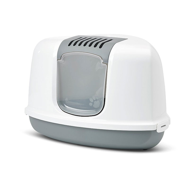 > Prévient la dispersion de la litière grâce à son couvercle et son volet à battant transparent